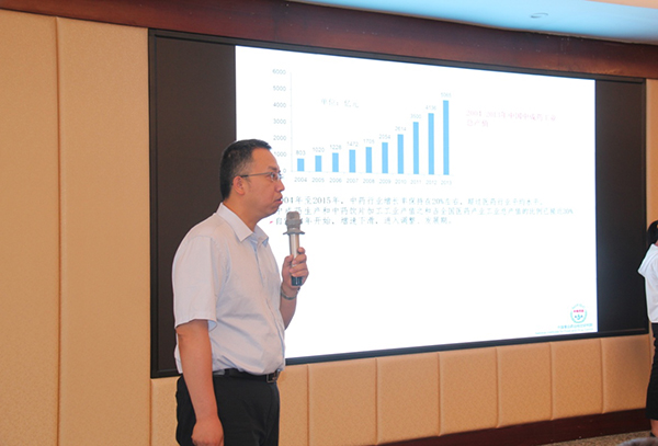 中国食品药品检定研究院中药民族药检定所天然药物室主任金红宇做“中药材产业发展情况”报告
